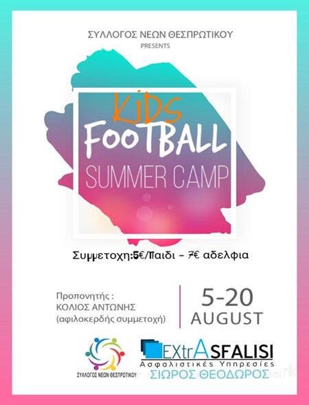 Τα μέλη του Συλλόγου Νέων Θεσπρωτικού βρίσκονται στην ευχάριστη θέση να σας ανακοινώσουν την διοργάνωση του «1ου Football Kids Summer Camp» στο Θεσπρωτικό τον ερχόμενο Αύγουστο !