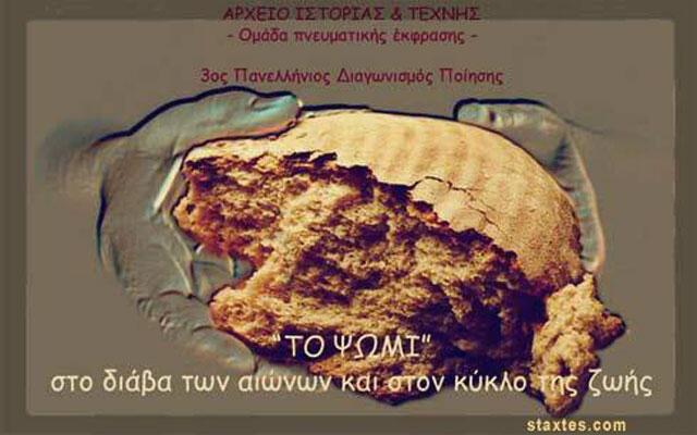 Γ΄ Βραβείο (Ισοψηφία): «Το ψωμί» - Σαραντοπούλου Σεσίλια, Α΄ Λυκείου, Ελληνοαμερικανικό Εκπαιδευτικό Ίδρυμα Κολλέγιο Ψυχικού – Κηφισιά Αττικής.