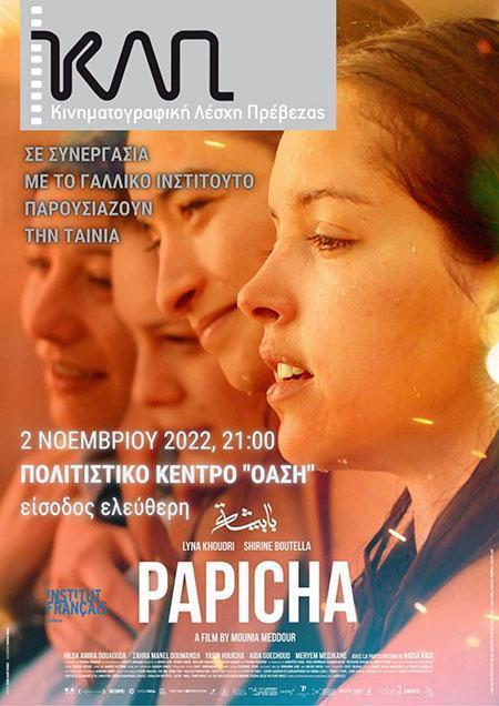 Η Κινηματογραφική Λέσχη Πρέβεζας ανάβει ξανά τους προβολείς της όμορφης εικαστικής τέχνης, του σινεμά, την Τετάρτη 2 Νοεμβρίου, στις 21.00, με ένα μίνι αφιέρωμα στον Αφρικανικό κινηματογράφο που προβάλει σε συνεργασία με το Γαλλικό Ινστιτούτο, με ελεύθερη είσοδο. Οι προβολές θα γίνονται στο Πολιτιστικό Κέντρο « Όαση». Η πρώτη ταινία του αφιερώματος είναι η ταινία «PAPICHA» (2019) σε σκηνοθεσία της Μοunia Medour. από την Αλγερία.
