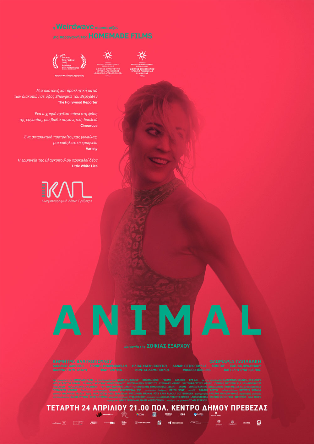 Έχοντας ήδη αποσπάσει πολυάριθμα βραβεία σε φεστιβάλ σε όλο τον κόσμο, το Animal, η νέα ταινία της Σοφίας Εξάρχου, προβάλλεται από την Κινηματογραφική Λέσχη Πρέβεζας την Τετάρτη 24 Απριλίου στις 21.00 στο Πολιτιστικό Κέντρο Πρέβεζας. Εισιτήριο 4 ευρώ για φοιτητές, 6 ευρώ γενική είσοδο, και δωρεάν είσοδο για μαθητές και ανέργους.