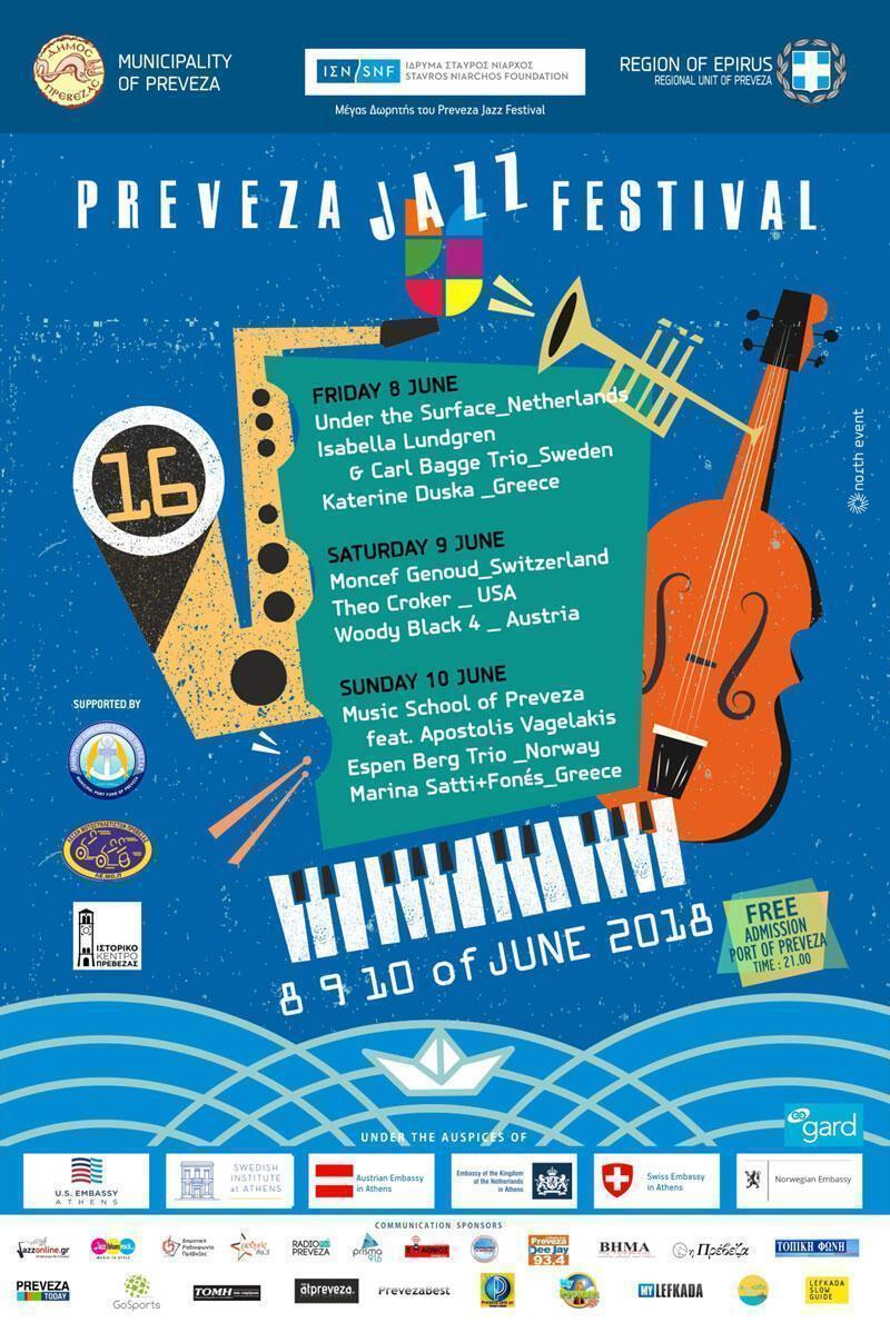 To 16ο Preveza Jazz Festival έρχεται για τρεις μοναδικές βραδιές στις 8, 9 και 10 Ιουνίου 2018 στο λιμάνι της Πρέβεζας.