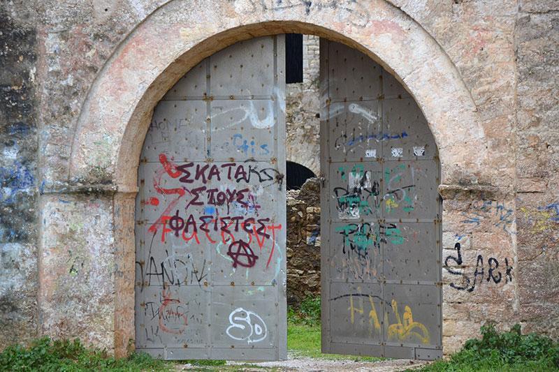 Λίγα μέτρα πιο κει, στέκει αγέρωχο το Κάστρο Παντοκράτορα εγκαταλελειμμένο στη φθορά του χρόνου?, με την κεντρική πύλη μισάνοιχτη, έρμαιο στον οποιονδήποτε θέλει να μπει και να αλώσει