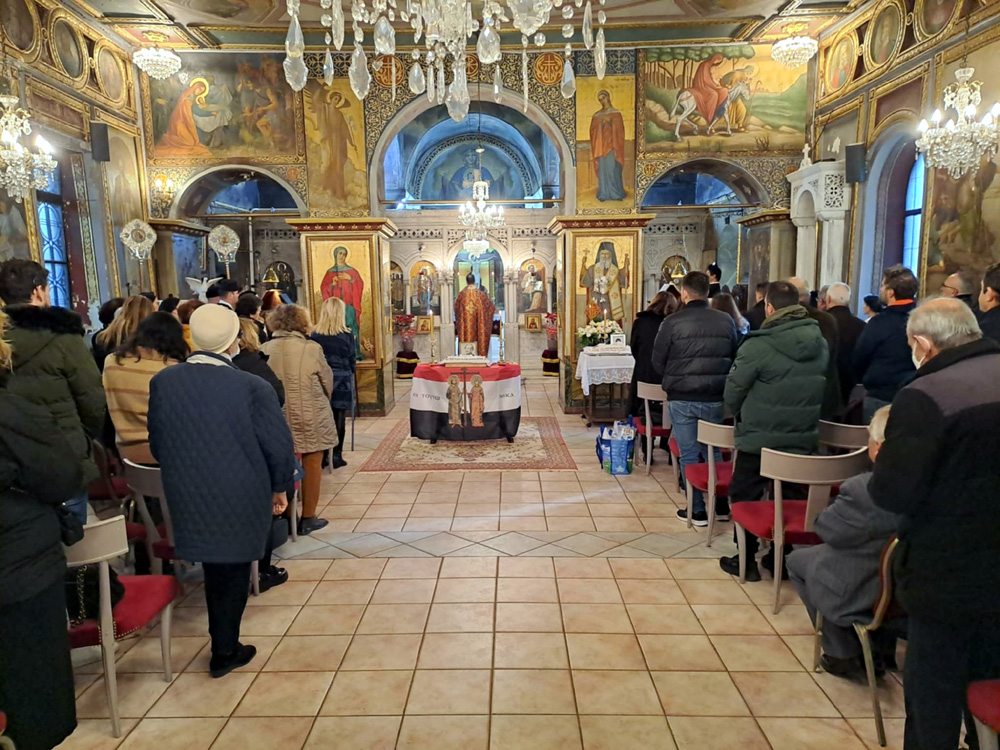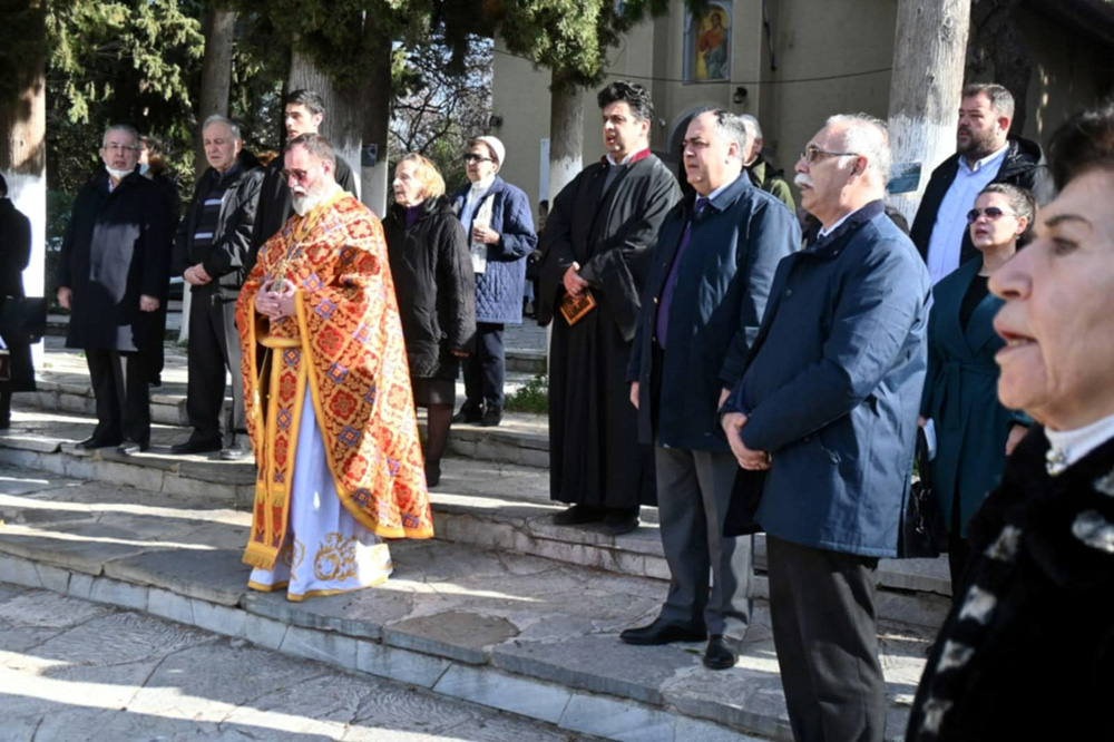 Η τελετή συνεχίστηκε έμπροσθεν του Ιερού Ναού όπου Βρίσκεται η περίτεχνη μαρμάρινη Λάρνακα όπου είναι εναποτεθειμένα τα οστά του Αλέξανδρου Υψηλάντη.