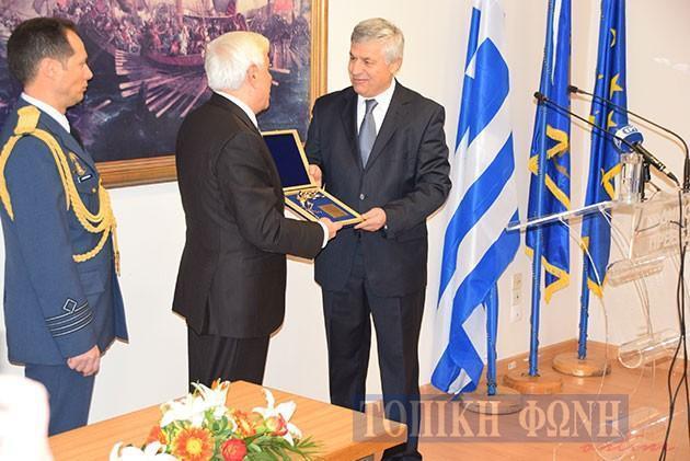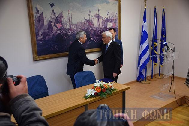 Μεταξύ άλλων ανέφερε «Το Δημοτικό Συμβούλιο Πρέβεζας, αλλά και ο λαός της Πρέβεζας τιμά σήμερα τη διαδρομή σας ως διακεκριμένο Καθηγητή, επιστήμονα και πολιτικό. Μια πορεία ζωής που χαρακτηρίζεται από σύνεση, μετριοπάθεια, ήθος, έργο ορατό και μετρήσιμο… Από τη μέχρι σήμερα παρουσία σας στο ύπατο πολιτειακό αξίωμα της Χώρας, αναγνωρίζουμε την καθοριστική συμβολή σας για να βγει η Χώρα από το αδιέξοδο όσο πιο γρήγορα και πιο ανώδυνα».