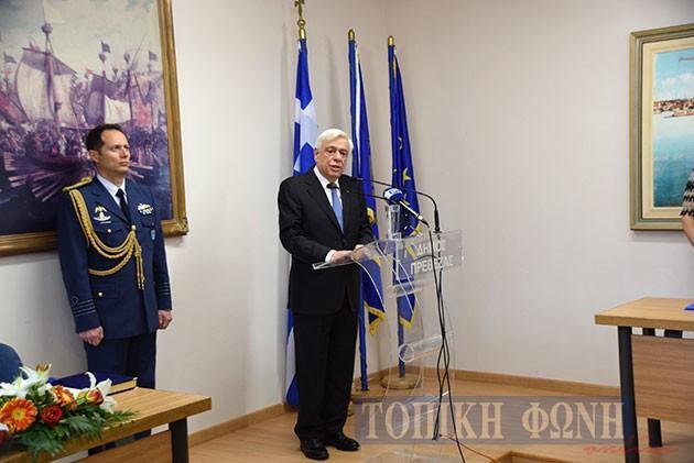 Ο Πρόεδρος της Δημοκρατίας Π. Παυλόπουλος στην αντιφώνησή του, αναφέρθηκε στη ιστορία της Πρέβεζας υπογραμμίζοντας « Εδώ βρίσκεται ο ποταμός Αχέροντας μαζί με το ονομαστό νεκρομαντείο. Ακόμη, σύμφωνα με ορισμένα δεδομένα, η Πρέβεζα φαίνεται ότι αποτελούσε λιμάνι του Βασιλιά Πύρρου Α΄, κατά τα Ελληνιστικά χρόνια. Επίσης, η Αρχαία Νικόπολη ιδρύθηκε μετά την νίκη του Οκταβιανού στο Άκτιο. Εδώ, κήρυξε, ερχόμενος από την Ασία και οδεύοντας προς το Μαρτύριο, τον Αναστημένο Χριστό, ο Απόστολος των Εθνών, Παύλος. Εδώ ήταν το «θέατρο» της ναυμαχίας του Ακτίου, που διεξήχθη λίγο έξω από τη σημερινή πόλη της Πρέβεζας, στις 2 Σεπτεμβρίου του 31 π.Χ. Πρόκειται για την ναυτική αναμέτρηση ανάμεσα στον Οκταβιανό από τη μια πλευρά και τον Μάρκο Αντώνιο και το ναυτικό της Κλεοπάτρας από την άλλη.