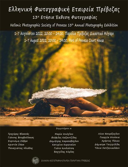 Η Ελληνική Φωτογραφική Εταιρεία Πρέβεζας σας προσκαλεί να επισκεφθείτε την ετήσια έκθεση φωτογραφίας που διοργανώνει για 13η χρονιά στην Παραλία της Πρέβεζας, 1-7 Αυγούστου και ώρες 20:00-24:00. Εγκαίνια Δευτέρα 1 Αυγούστου στις 21:00.