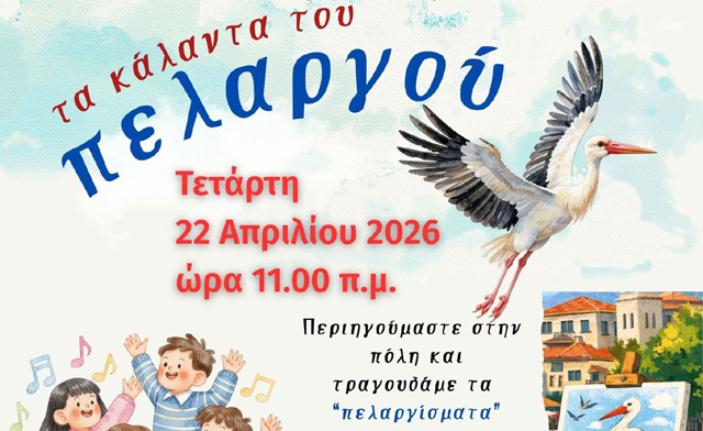 Σε ανακοίνωση που εξέδωσε ο Δήμος Ζηρού αναφέρονται τα εξής: Ο Δήμος μας, μαζί με τους μαθητές του 3ου Δημοτικού Σχολείου Φιλιππιάδας και σε συνεργασία με το 1ο και 2ο Δημοτικό, σας προσκαλούν σε μια ξεχωριστή, χαρούμενη δράση αφιερωμένη στην άφιξη των πελαργών στην πόλη μας!