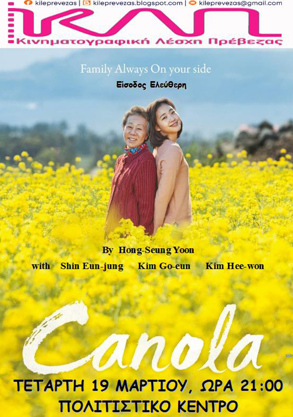 Η ταινία Canola (γνωστή και ως Grandmother Gye-choon) είναι ένα βαθιά συναισθηματικό κορεατικό δράμα του 2016 σε σκηνοθεσία του Hong Seung-yool, που αγγίζει θέματα αγάπης, απώλειας και επανασύνδεσης. Με πρωταγωνιστές τις Youn Yuh-jung και Kim Go-eun, η ταινία αφηγείται την συγκινητική ιστορία μιας γιαγιάς και της εγγονής της, που ενώθηκαν ξανά μετά από χρόνια αποχωρισμού, προσπαθώντας να γεφυρώσουν το χάσμα που έχει δημιουργηθεί ανάμεσά τους.