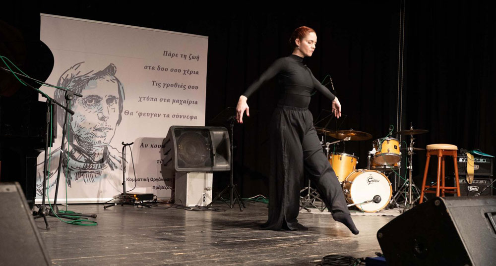 Το πρόγραμμα της βραδιάς περιλάμβανε επίσης χορογραφία από την Ελένη Σακκά πάνω σε στίχους του ποιητή, καθώς και τραγούδια με συνοδεία πιάνου από τον Βασίλη Τζίμα. Η εκδήλωση κορυφώθηκε με τη συναυλία του Γιώργου Ρούγκα (full band).
