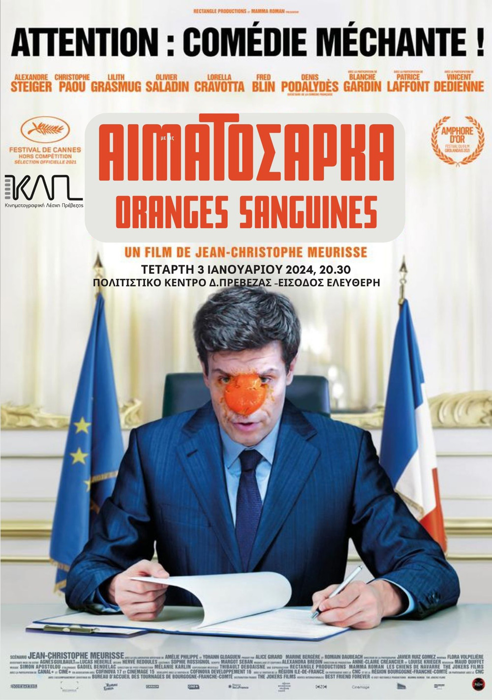Η Κινηματογραφική Λέσχη Πρέβεζας πιστή στην προβολή ταινιών με κινηματογραφικό χαρακτήρα και αισθητική, προβάλει την ταινία "Αιματόσαρκα" σε σκηνοθεσία του Ζαν-Κριστόφ Μερίς σήμερα Τετάρτη 3 Ιανουαρίου 2024! 20.30 στο Πολιτιστικό Κέντρο του Δήμου Πρέβεζας. Είσοδος ελεύθερη. Η προβολή γίνεται με την υποστήριξη του Γαλλικού Ινστιτούτου Ελλάδος.