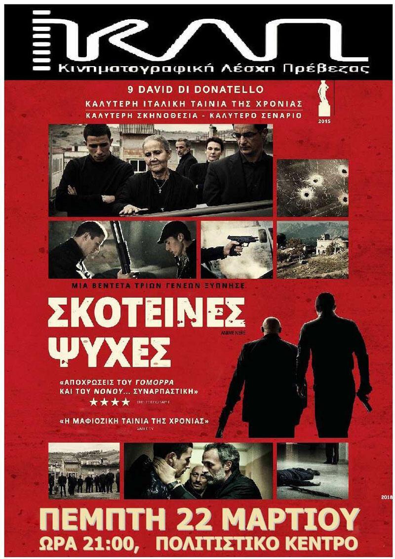 Η Κινηματογραφική Λέσχη Πρέβεζας συνεχίζει τις προβολές της την Πέμπτη 22 Μαρτίου ώρα 9.00 μ.μ στο Πολιτιστικό Κέντρο Πρέβεζας με την ταινία