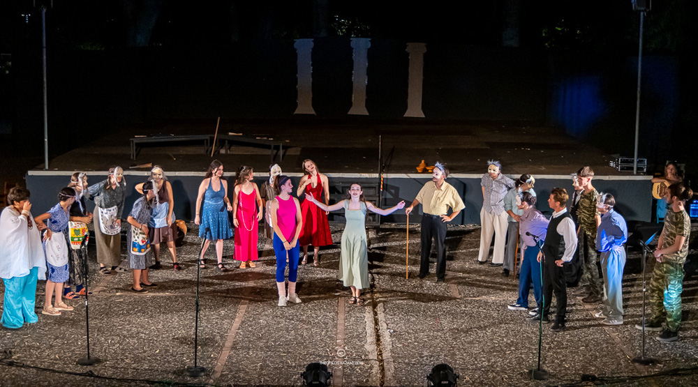 Η παράσταση, πλαισιωμένη από ζωντανή μουσική, προσέφερε άφθονο γέλιο, μεταδιδοντας ταυτόχρονα το διαχρονικό μήνυμα της αναγκαιότητας της ειρήνης ως προϋπόθεση για την ευημερία και την ευτυχία των ανθρώπων.