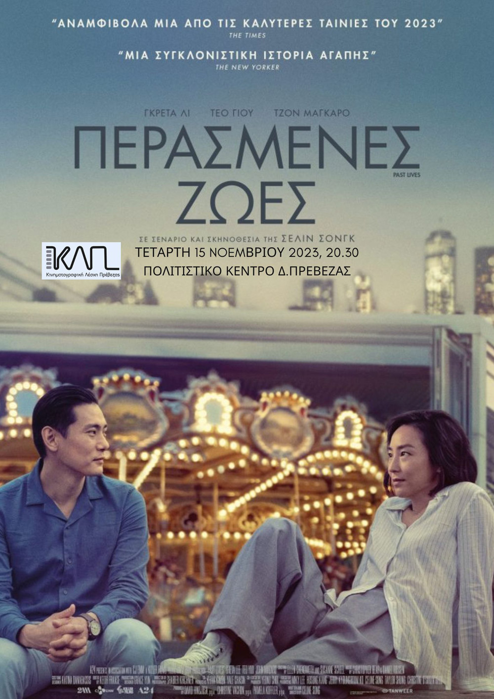 Η Κινηματογραφική Λέσχη Πρέβεζας πιστή στην προβολή ταινιών με κινηματογραφικό χαρακτήρα και αισθητική, προβάλει την ταινία "Περασμένες ζωές'' σε σκηνοθεσία Σελίν Σονγκ, αυτή την Τετάρτη 15 Νοεμβρίου στις 20.30 στο Πολιτιστικό Κέντρο Πρέβεζας με εισιτήριο 4 ευρώ για φοιτητές, 6 ευρώ γενική είσοδο, και δωρεάν είσοδο για μαθητές και ανέργους.