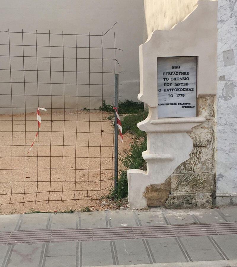 Ο Πολιτιστικός Σύλλογος <ΠΡΕΒΕΖΑ> ευχαριστεί δημόσια όσους συνέβαλαν στην πραγματοποίηση τοποθέτησης της ενημερωτικής πλάκας στη θέση που «εγκαταστάθηκε το σχολείο που ίδρυσε ο Πατροκοσμάς το 1779», στην σημερινή οδό Κ. Καρυωτάκη αρ. 9.