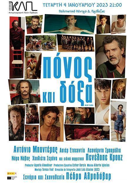 Η Κινηματογραφική Λέσχη πιστή στην προβολή ταινιών με κινηματογραφικό χαρακτήρα και αισθητική προβάλλει την Τετάρτη 4 Ιανουαρίου 2023το αριστούργημα «Πόνος και Δόξα» τουΠέδροΑλμοδόβαρ στο Πολιτιστικό Κέντρο του Δήμου Πρέβεζας με γενική είσοδο στα έξι ευρώ(6), για φοιτητές στα τέσσερα ευρώ(4) και γιαανέργους και μαθητές η είσοδος θα είναι δωρεάν.