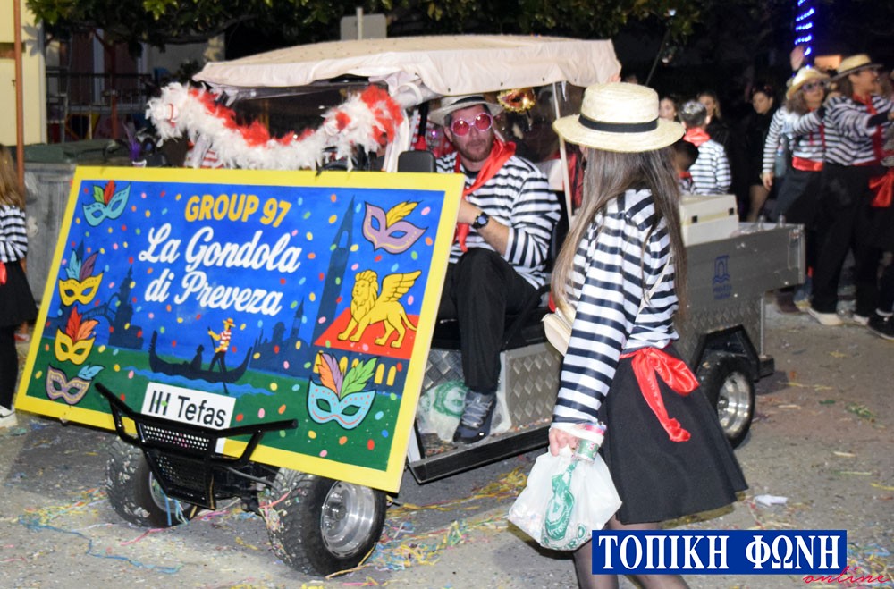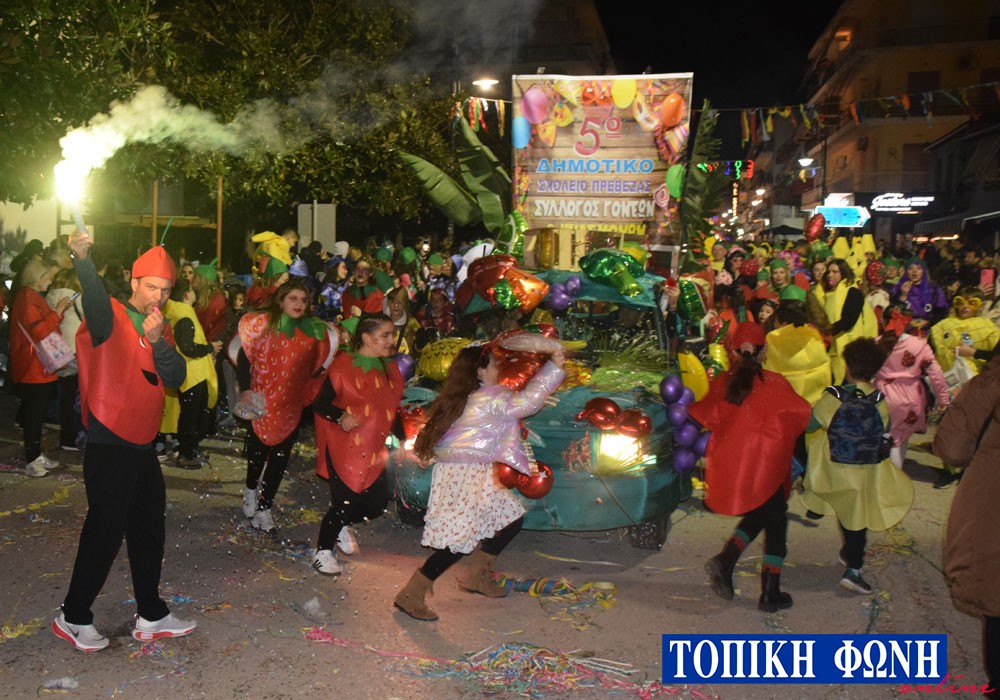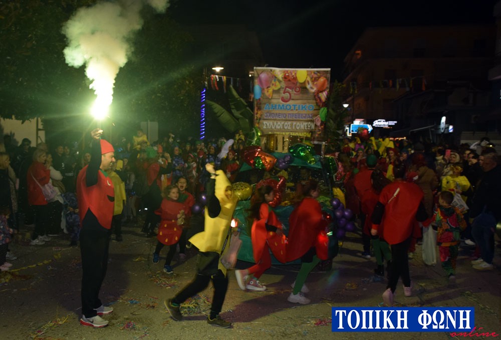Η παρέλαση ξεκίνησε λίγο μετά τις 6 το απόγευμα με τους καρναβαλιστές να διασχίζουν τη γεμάτη από κόσμο Λ. Ειρήνης. Ο κεντρικός δρόμος της Πρέβεζας γέμισε φανταχτερά κουστούμια και ξεχωριστά άρματα για σχεδόν 3 ώρες.