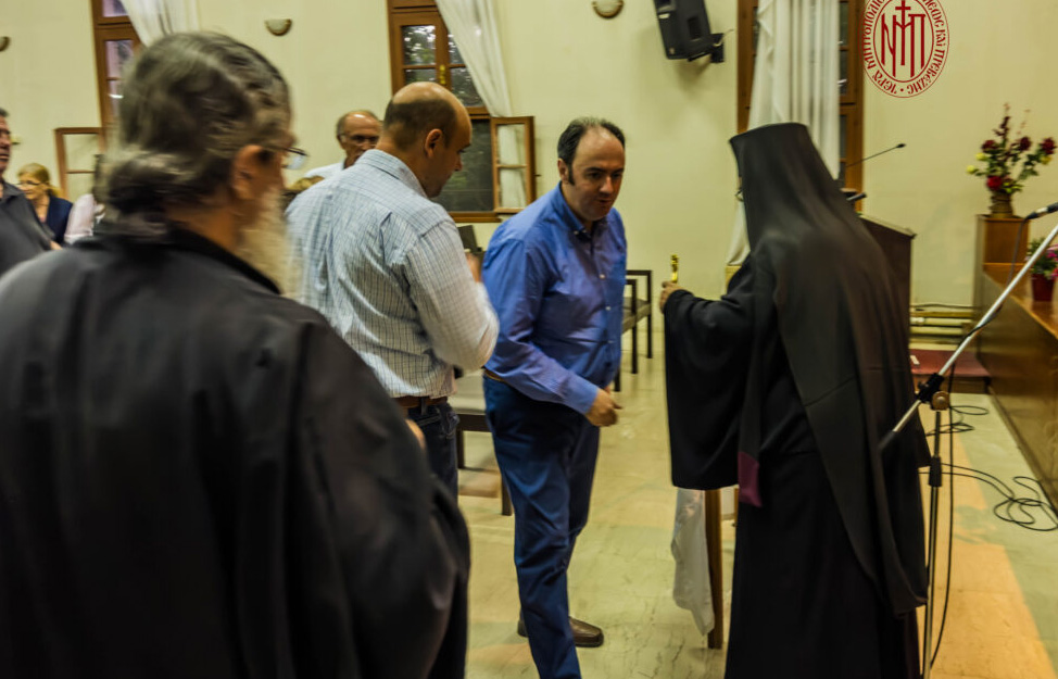 Εν συνεχεία έλαβε τον λόγο ο Διευθυντής της Σχολής π. Χαρίτων, ο οποίος μεταξύ άλλων τόνισε ότι ἡ Βυζαντινή Μουσική είναι λατρευτική και ότι ο φυσικός χώρος της είναι ο Ιερός Ναός, επισημαίνων ότι χαρακτηρίζεται και ως μουσική των αγγέλων, εκφράζοντας όμως τον άνθρωπο ως ψυχοσωματική οντότητα.