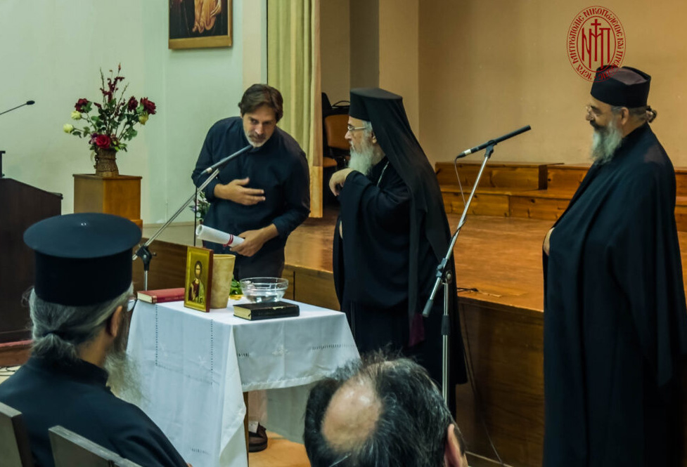Στον χαιρετισμό που απηύθυνε προς τούς σπουδαστές της Σχολής ο Σεβασμιώτατος αναφέρθηκε τόσο στον σκοπό της ψαλτικής τέχνης, πού είναι να ευχαριστούμε και να δοξολογούμε τον Θεό, όσο και στους σκοπούς της Σχολής, που είναι αφ’ ενός μεν η εκμάθηση της Βυζαντινής Μουσικής, αφ’ ετέρου δε η επάνδρωση των ιερών αναλογίων, πού τα τελευταία χρόνια παρουσιάζει κάμψη. Τόνισε επίσης πώς η γνώση του Τυπικού της Εκκλησίας μας και η ευκρινής ανάγνωση παίζουν πρωτεύοντα ρόλο στην ιεροψαλτική διακονία. Τέλος ευχαρίστησε τον Διευθυντή της Σχολής Αρχιμ. Χαρίτωνα Μιχαήλ, τον Διευθυντή της χορωδίας της Μητροπόλεώς μας «Chorus Nicopolitanus» και Καθηγητή της Σχολής κ. Μιχαήλ Ζάμπα, Πρωτοψάλτη του Ιερού Ναού Αγίας Ειρήνης οδού Αιόλου της Ιεράς Αρχιεπισκοπής Αθηνών, τον κ. Γεώργιο Αλεφραγκή, πού διδάσκει στο πρακτικό τμήμα της Σχολής, καθώς και όλους τούς σπουδαστές και τις σπουδάστριες.