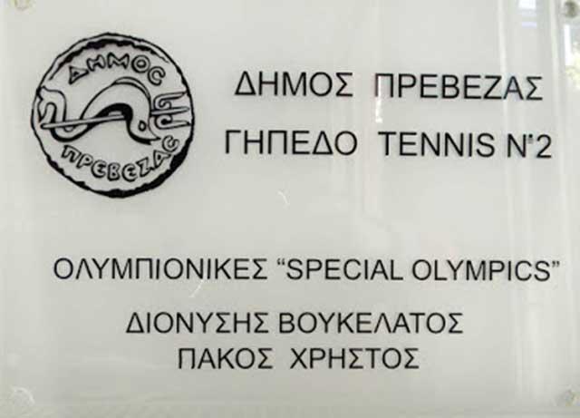 Η ανωτέρω πλακέτα, η οποία εκτυπώθηκε πριν από 3 μήνες με την πρωτοβουλία του Ομίλου Αντισφαίρισης, θα τοποθετηθεί στα γήπεδα του τένις ύστερα από απόφαση του Δημοτικού Συμβουλίου, με την συμμετοχή του Δημάρχου στα πλαίσια του διεθνές πρωταθλήματος τένις PREVEZA CUP 2017.