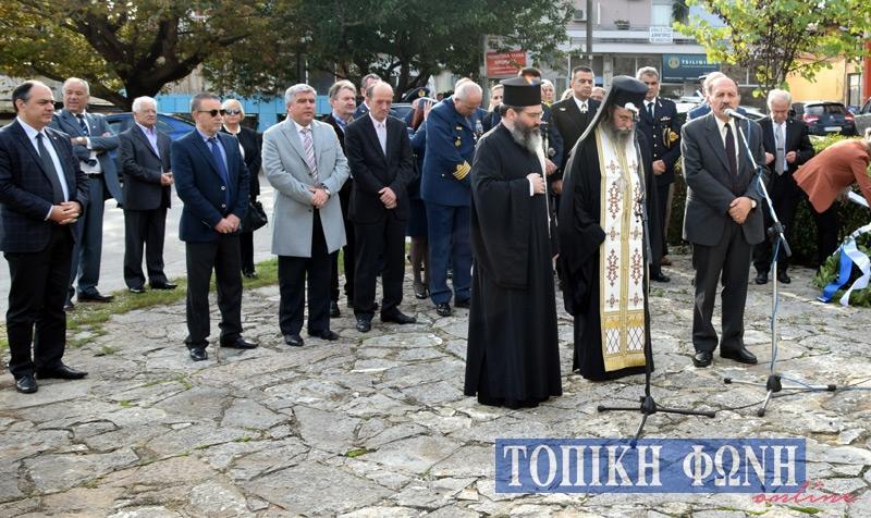 Στη συνέχεια ακολούθησε τέλεση επιμνημόσυνης δέησης στο Ηρώο Πεσόντων της πόλης και κατάθεση στεφάνων από τις πολιτικές και στρατιωτικές Αρχές του τόπου.