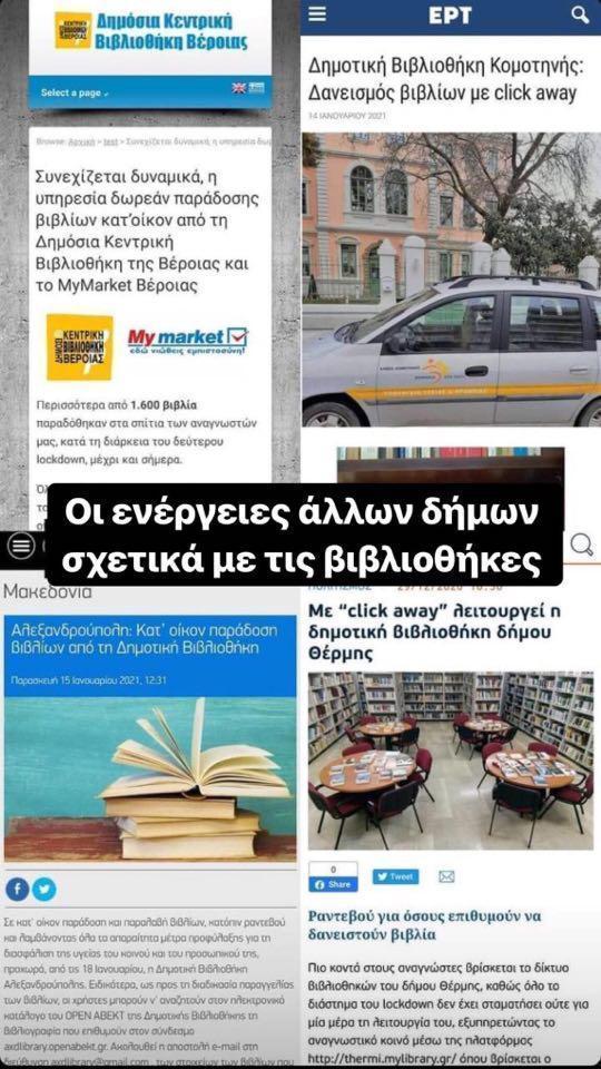 Ο δήμος μας σίγουρα δεν υστερεί από τους υπόλοιπους σε κοινωνικά αντανακλαστικά ή σε ευαισθησία γύρω από θέματα πολιτισμού. Και σίγουρα μία τέτοια ενέργεια θα διευκόλυνε αρκετούς από τους συμπολίτες μας που δεν μπορούν να μετακινηθούν εύκολα ή ανήκουν σε ευπαθείς ομάδες και δεν έχουν την οικονομική δυνατότητα να προβούν σε αγορά βιβλίων.