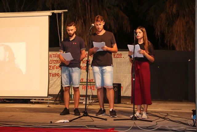 Ακολούθησε πολιτική ομιλία από το Νεκτάριο Τριάντη, μέλος της ΚΕ του ΚΚΕ. Τη σκυτάλη πήραν οι Folk n’ roll οι οποίοι ξεσήκωσαν με τις διασκευές τους αλλά και με δικά τους τραγούδια, και το κέφι και ο χορός να ανάβουν για τα καλά.