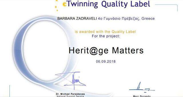 Νέα επιτυχία για το 4ο Γυμνάσιο Πρέβεζας αφού του απονεμήθηκαν άλλες δύο ετικέτες ποιότητας για τα έργα του 'European castles ' + 'Herit@ge Matters ' που υλοποιήθηκαν το περασμένο σχολικό έτος και the show goes on !!!