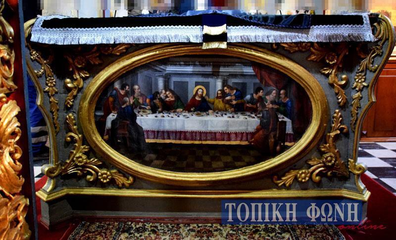 Πιστό αντίγραφο του Μυστικού Δείπνου του Λεονάρντο Ντα Βίντσι αποτελεί η εικόνα στην Αγία Τράπεζα του Μητροπολιτικού Ναού Αγίου Χαραλάμπους, η οποία αποκαλύφθηκε μετά τις εργασίες συντήρησης που πραγματοποιούνται το τελευταίο διάστημα.