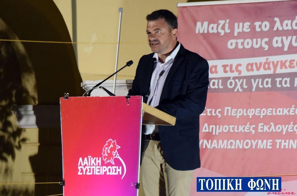 Η κεντρική ομιλία του επικεφαλής του Συνδυασμού «Λαϊκή Συσπείρωση» Κώστα Κύρλα πραγματοποιήθηκε στην παραλία, μπροστά από τα Δικαστήρια Πρέβεζας.