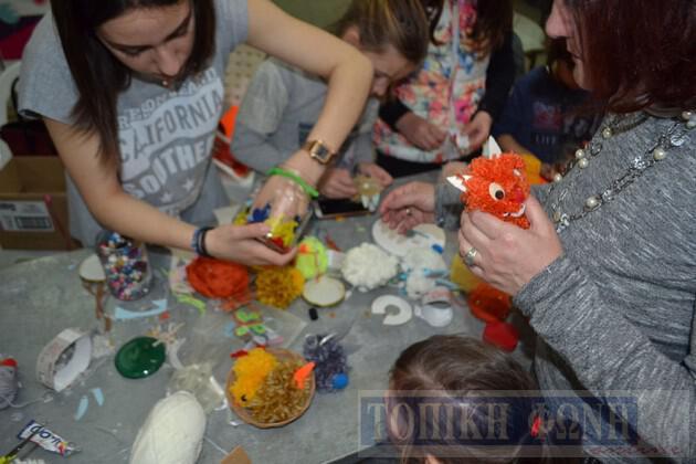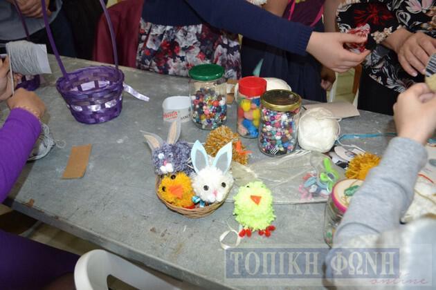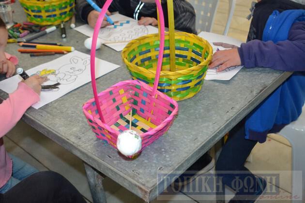 Τα παιδιά περασαν τον χρόνο τους δημιουργικά μα κυρίως διασκεδαστικά φτιάχνοντας καλαθάκια με πολύχρωμα αυγά, λαγουδάκια, πουλάκια, αλλά και ζωγραφική.