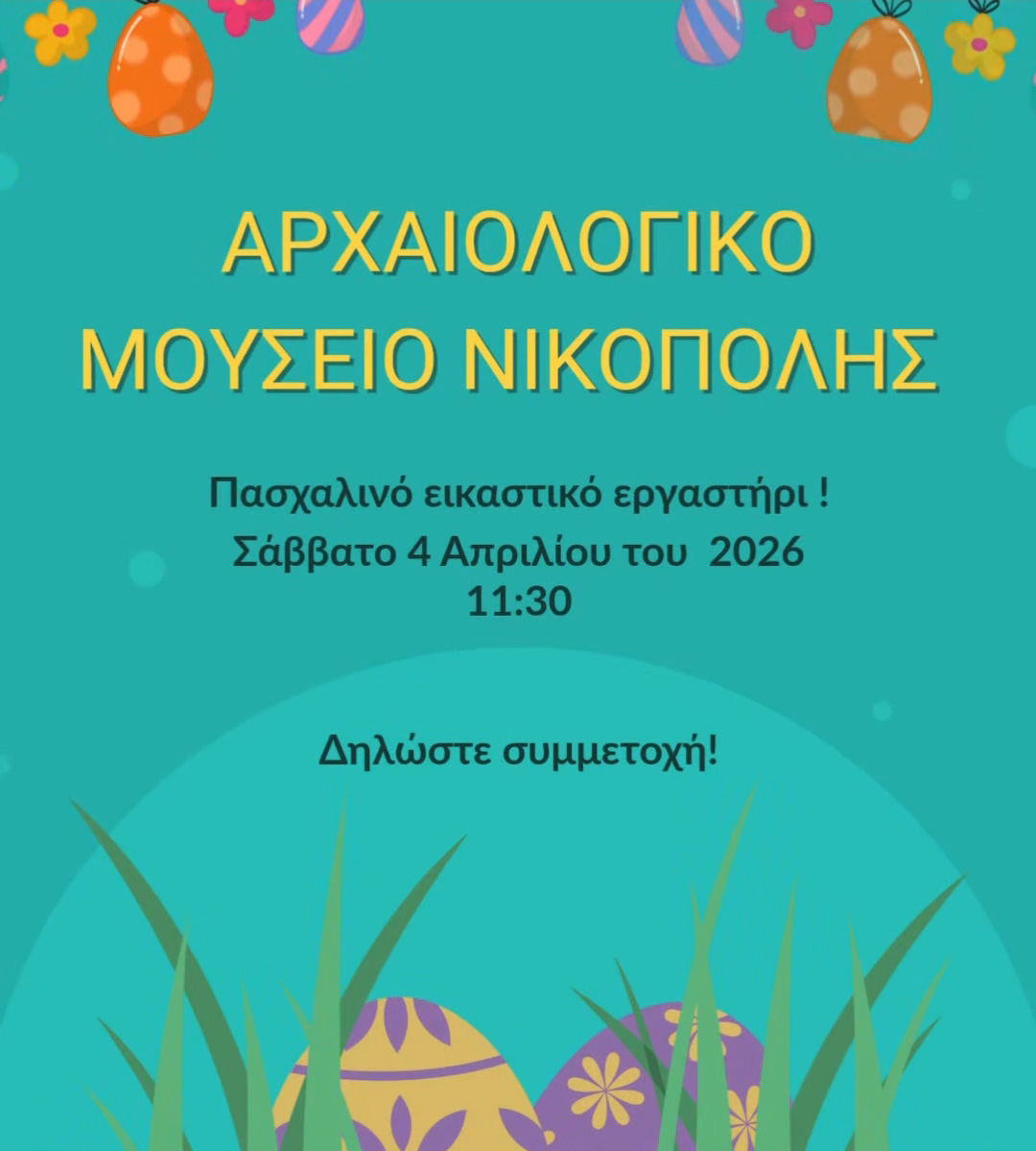 Το Αρχαιολογικό Μουσείο Νικόπολης προσκαλεί τους μικρούς του φίλους σε μια ξεχωριστή πασχαλινή δράση, το Σάββατο 4 Απριλίου 2026, στις 11:30.