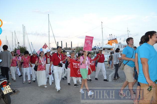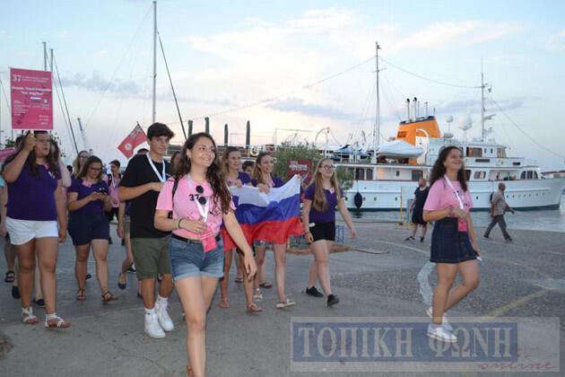 Λίγο μετά τις 8.30 το βράδυ ξεκίνησε η παρέλαση των χορωδιών, ενώ τα "Κρόταλα" έδωσαν ξεχωριστή νότα στην παρέλαση, από την πλατεία Ανδρούτσου με αφετηρία το Κηποθέατρο όπου πραγματοποιήθηκε η τελετή έναρξης.