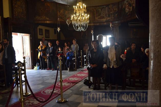 Μετά την απόλυση του Εσπερινού ο Σεβασμιώτατος Μητροπολίτης Χρυσόστομος, διένειμε σε όλους τα πατροπαράδοτα κόκκινα αυγά, μεταφέροντας προς όλους τις Πασχάλιες Εόρτιες ευχές Του.