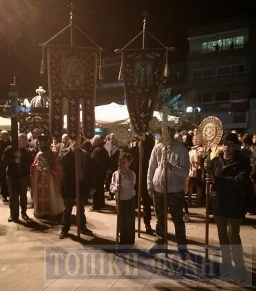 Η πλατεία της πόλης πλημμύρισε από εκατοντάδες πιστούς ενώ τον Επιτάφιο του Αγίου Χαραλάμπους συνόδευσαν σπουδαστές της ΑΕΝ και Φιλαρμονική Ορχήστρα "Ορφευς" έδινε τον πένθιμο τόνο.