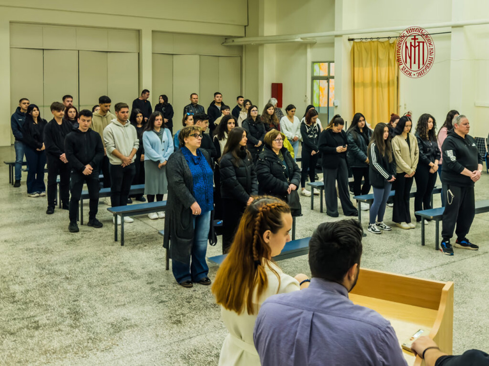 Στο τέλος της ακολουθίας ο Σεβασμιώτατος απηύθυνε πατρικό λόγο προς τούς καθηγητές καί τούς φοιτητές της Ακαδημίας, αναλύοντας θεολογικά το νόημα των Χαιρετισμών της Θεοτόκου. Αναφέρθηκε στη δύναμη της προσευχής προς την Παναγία, η οποία στέκεται ακοίμητη μεσίτρια προς τον Υιό της, χαρίζοντας στον καθένα από εμάς αυτό πού χρειαζόμαστε για την πνευματική μας ωφέλεια καί σωτηρία. Κατακλείοντας ευχήθηκε πατρικά καλή συνέχεια στον πνευματικό αγώνα της Σαρακοστής καί ευλογημένη Ανάσταση, γεμάτη φως, ελπίδα καί χαρά.