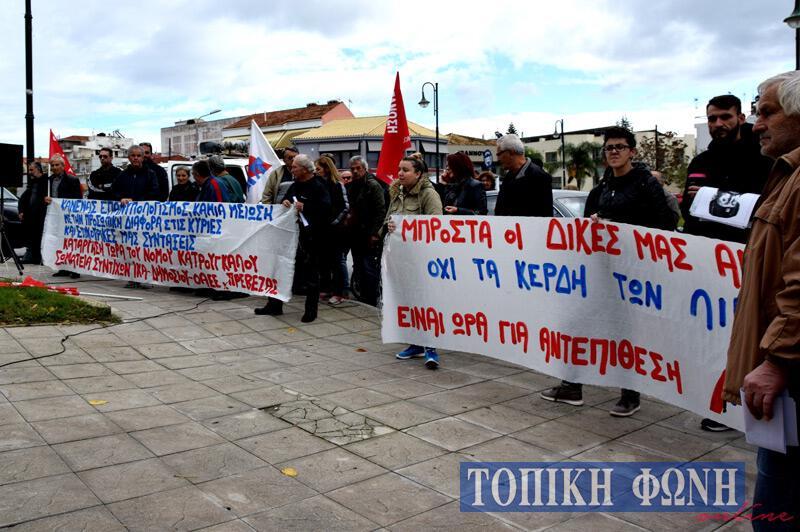 Για την καταπάτηση των δικαιωμάτων των εργαζομένων, τους βάρβαρους μνημονιακούς νόμους και τον απαράδεκτο νόμο Κατρούγκαλου μίλησαν εκ μέρους της Ομοσπονδίας Αγροτικών Συλλόγων ο Νίκος Τσέγκος και ο Πρόεδρος του Εμπορικού Συλλόγου Ανδ. Καραμάνης.
