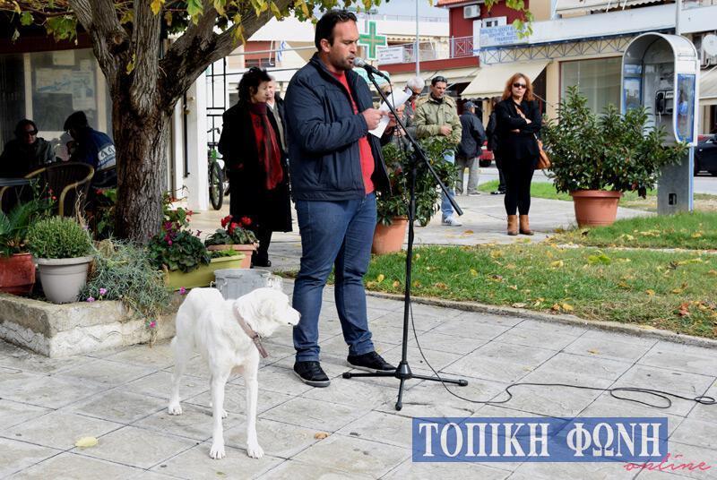 Κεντρικός ομιλητής στην συγκέντρωση ήταν ο Πρόεδρος του Σωματείου Ιδιωτικών Υπαλλήλων Γιώργος Πούμπης ο οποίος αναφέρθηκε εκτενώς στους αντεργατικούς νόμους, τις δραματικές συνθήκες ασφάλισης και τα σχέδια που έχει η Κυβέρνηση να κανονίζει τους μισθούς σύμφωνα με τα συμφέροντα της εργοδοσίας.