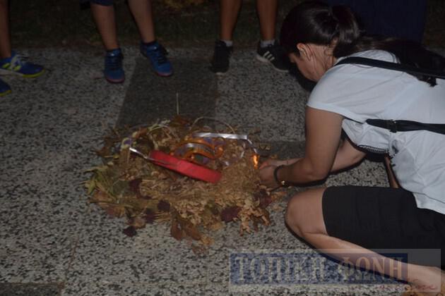 Στη συνέχεια οι διοργανωτές έκαψαν τα πρωτομαγιάτικα στεφάνια. Η φωτιά σύμφωνα με την παράδοση επιφέρει την κάθαρση και οι άνθρωποι απαλλάσσονται από το κακό.