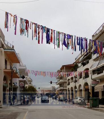 Αποκριάτικη ατμόσφαιρα από σήμερα το απόγευμα στην Λ. Ειρήνης, αφού μέλη και φίλοι του Κομιτάτου στόλισαν την κεντρική λεωφόρο και σιγά - σιγά η πόλη μπαίνει στο ρυθμό της αποκριάς.