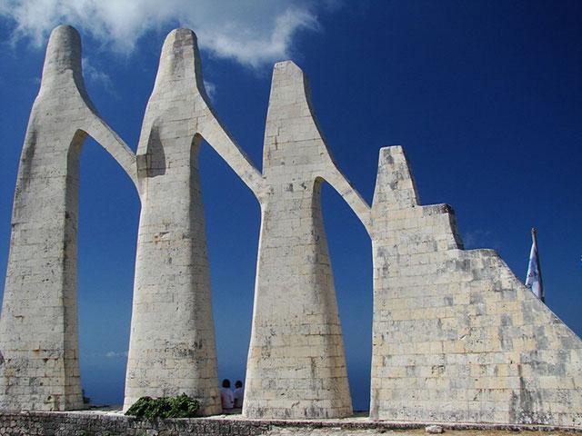 Η φυσική του θέση του, αλλά και οι μνημειακής κλίμακας διαστάσεις του, 18 x 15 μ, κάνουν το μνημείο ορατό από απόσταση 30 χλμ, γεγονός που το αφηγείται ο ίδιος ο δημιουργός του, το 1960, όταν το είδε από το πλοίο ταξιδεύοντας από Ελλάδα για Ιταλία, γράφοντας χαρακτηριστικά: