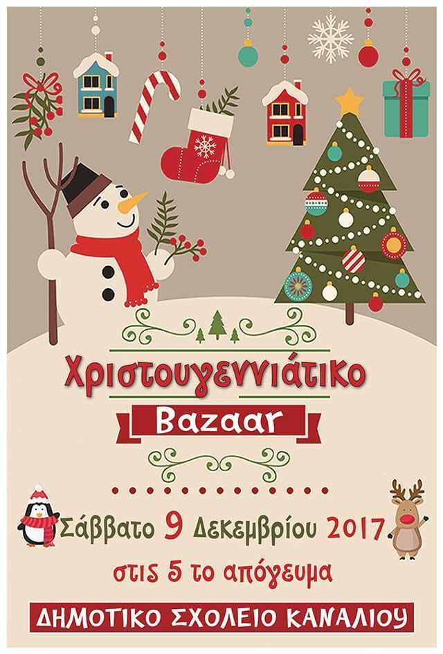 Το Δημοτικό σχολείο Καναλίου διοργανώνει Χριστουγεννιάτικο Μπαζάρ με χειροποίητες κατασκευές το Σάββατο 9 Δεκεμβρίου στις 5 το απόγευμα στο χώρο του Σχολείου.
