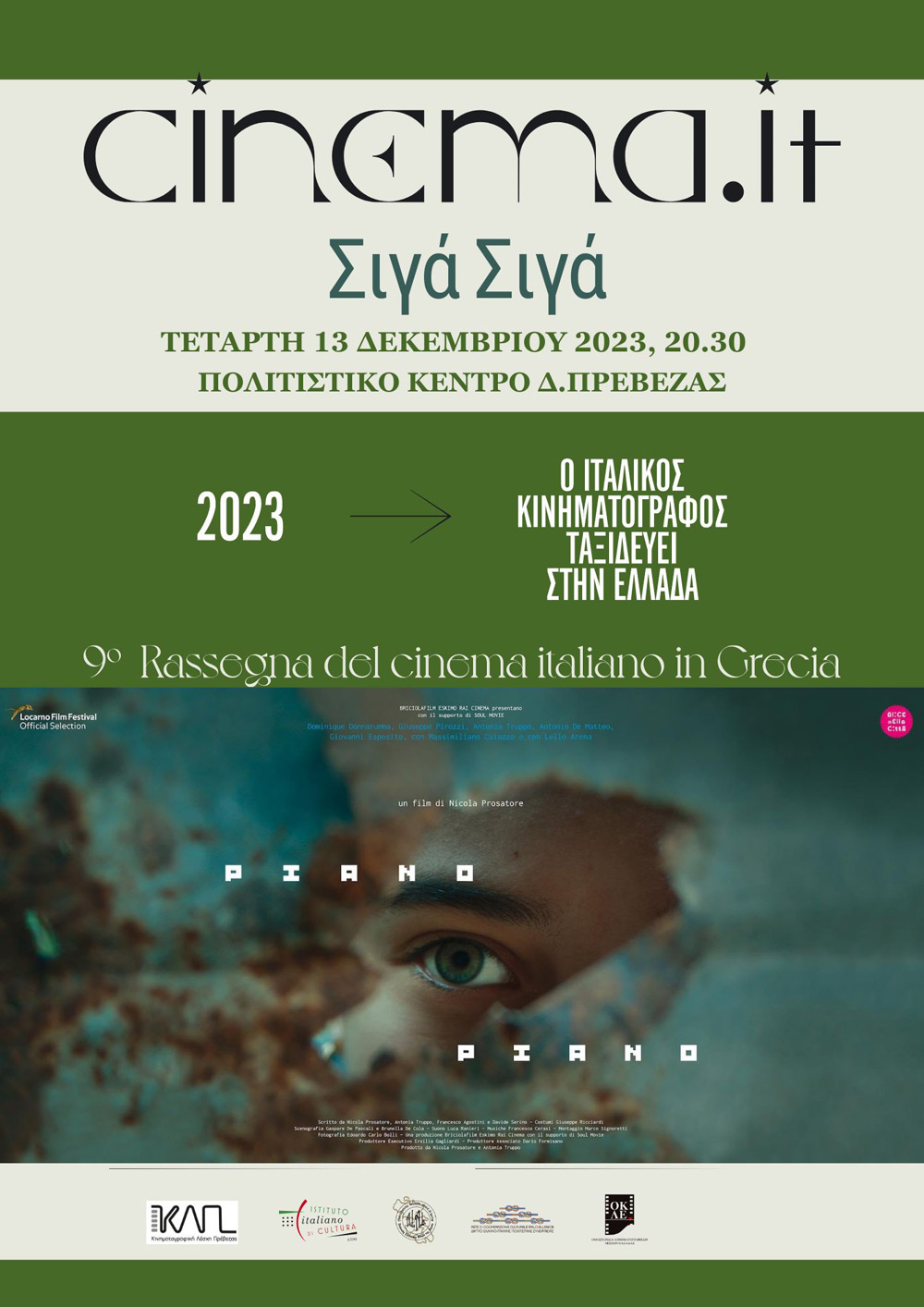 Η Κινηματογραφική Λέσχη Πρέβεζας πιστή στην προβολή ταινιών με κινηματογραφικό χαρακτήρα και αισθητική, προβάλει την ταινία " Σιγά Σιγά” (Piano Piano) σε σκηνοθεσία Nicola Prosatore, αυτή την Τετάρτη 13 Δεκεμβρίου στις 20.30 στο Πολιτιστικό Κέντρο Πρέβεζας. Είσοδος ελεύθερη.