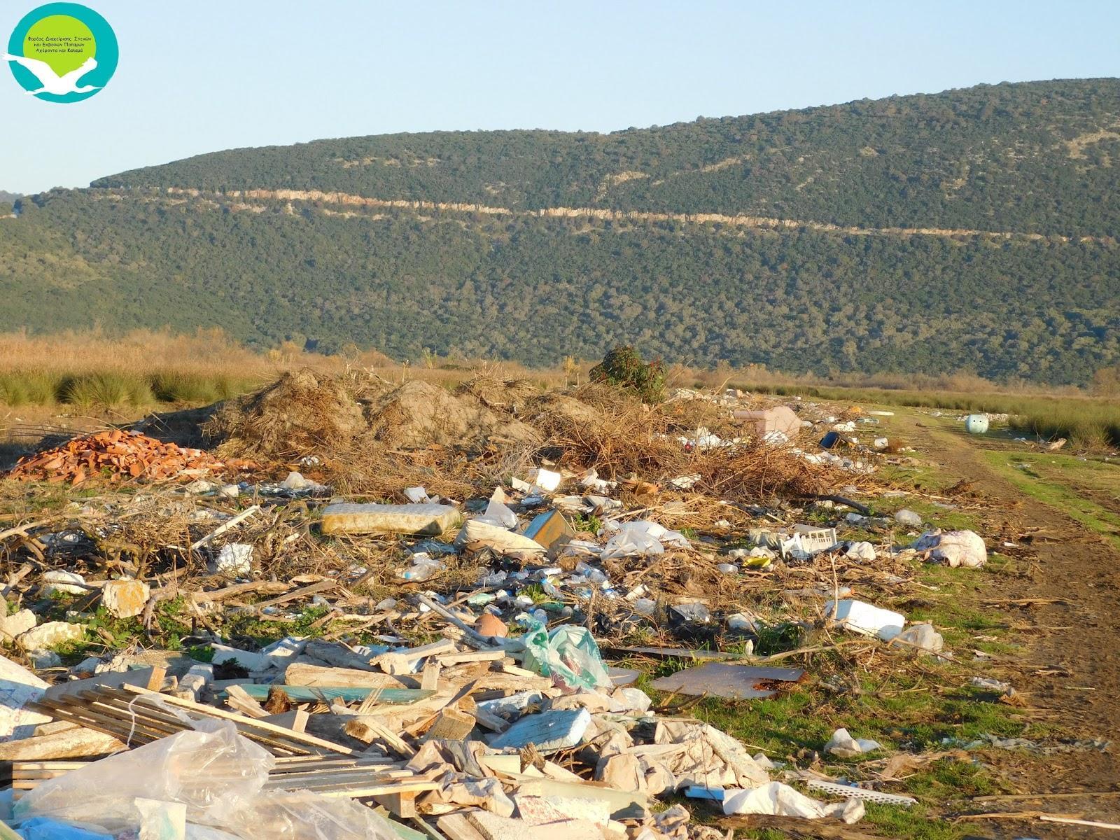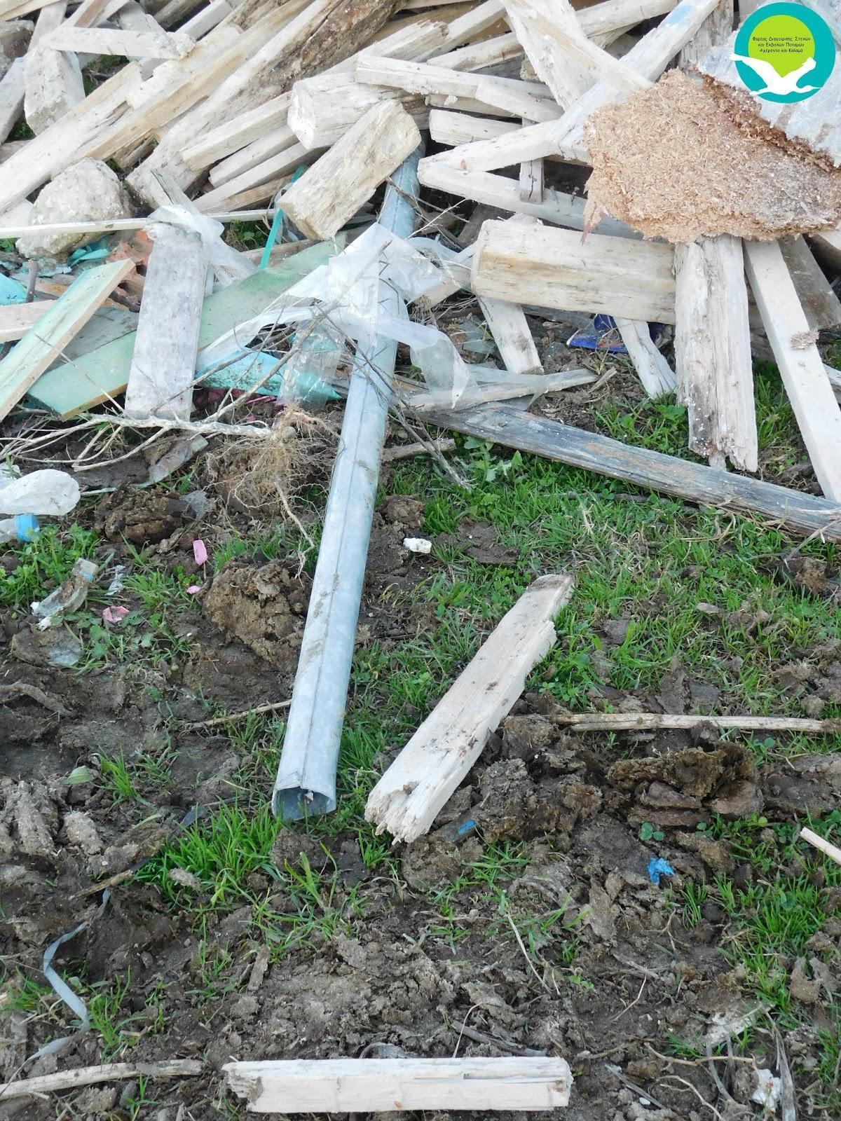 Παρότι στην συγκεκριμένη θέση ο Φορέας Διαχείρισης είχε τοποθετήσει ενημερωτική πινακίδα για την απαγόρευση ρίψης σκουπιδιών, δεν δίστασαν να κατεδαφίσουν την πινακίδα και να την σκεπάσουν με σωρό από ξύλα που χρησιμοποιούνται σε οικοδομές!