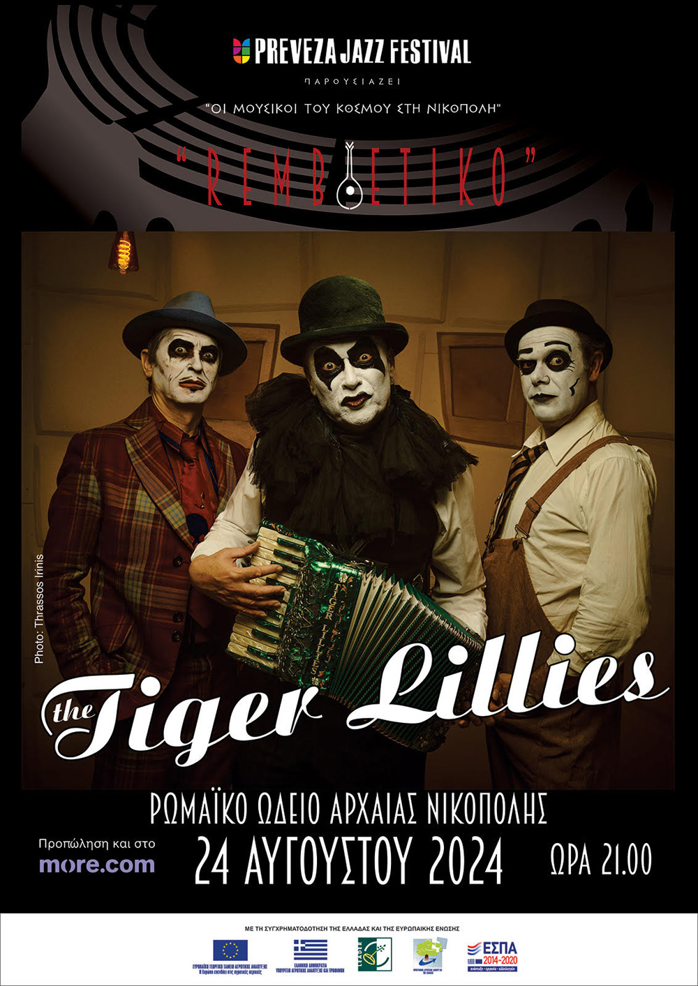 Μετράμε αντίστροφα για την πολυαναμενόμενη συναυλία των Tiger Lillies στην Πρέβεζα, και με μόλις 3 μέρες να απομένουν, η ζήτηση για τα εισιτήρια αυξάνεται ραγδαία! Αυτό το Σάββατο, 24 Αυγούστου 2024, το Ρωμαϊκό Ωδείο της Αρχαίας Νικόπολης θα φιλοξενήσει τη διάσημη cult cabaret και alternative-rock μπάντα, σε μια βραδιά γεμάτη μουσική, μαύρο χιούμορ και λυρισμό.