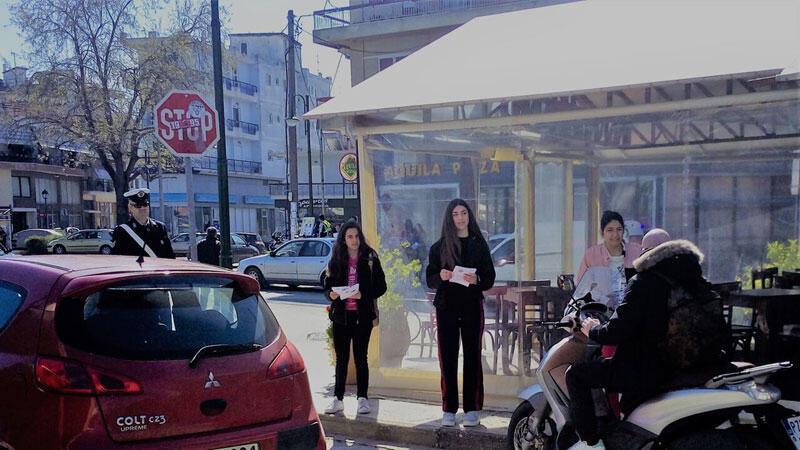 Την τελευταία ημέρα Παρασκευή 30 Μαρτίου οι μαθητές της Γ’ τάξης με την σημαντική υποστήριξη της Τροχαίας , της Λέσχης Μοτοσυκλετιστών και του Συλλόγου Γονέων και Κηδεμόνων εξόρμησαν σε κομβικά σημεία της πόλης – έξοδος του 4ου Γυμνάσιου – φανάρια Επτανήσου , διάβαση πεζών Λεωφόρος Ειρήνης στο ύψος του 2ου Δημοτικού σχολείου και στον κόμβο του Φόρου . Ενημέρωσαν τους οδηγούς με φυλλάδια που είχαν ετοιμάσει κατά τη διάρκεια της εβδομάδας που αφορούσαν συμβουλές για ασφαλή οδήγηση – ο δεκάλογος του οδηγού με τη σωστή συμπεριφορά προς τον ίδιο και προς τους επιβαίνοντες , προς τους πεζούς καθώς και προς τους μοτοσυκλετιστές και τους ποδηλάτες , μ ε κεντρικό σύνθημα : « ΑΓΑΠΩ ΤΗ ΖΩΗ ΟΔΗΓΩ ΜΕ ΑΣΦΑΛΕΙΑ». Άλλα συνθήματα που επινόησαν και φιλοτέχνησαν ήταν: ‘ΒΑΛΕ ΖΩΝΗ ΤΗ ΖΩΗ ΣΟΥ ΣΩΖΕΙ» ή «ΟΔΗΓΕ Ο ΠΕΖΟΣ ΕΧΕΙ ΠΡΟΤΕΡΑΙΟΤΗΤΑ» , κ.α. Επίσης , οι μαθητές διεξήγαγαν έρευνα με φύλλο εργασίας παρατήρησης προς τα διερχόμενα οχήματα , στοχεύοντας να καταγράψουν εάν τα διερχόμενα οχήματα τηρούσαν βασικούς κανόνες οδικής ασφάλειας: ζώνες ασφάλειας, χρήση κινητού κατά την οδήγηση, κράνος για τους δικυκλιστές , κ,α.