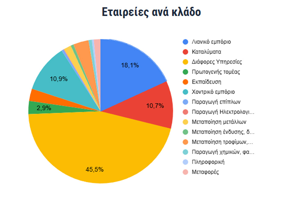 Η αποτύπωση βασίζεται σε επίκαιρη βάση δεδομένων του Μητρώου του Επιμελητηρίου και περιλαμβάνει τη συνολική επιχειρηματική βάση του νομού, με 4951 ενεργές επιχειρήσεις μετά από εκτεταμένο έλεγχο, καταγραφή και ανανέωση των στοιχείων.