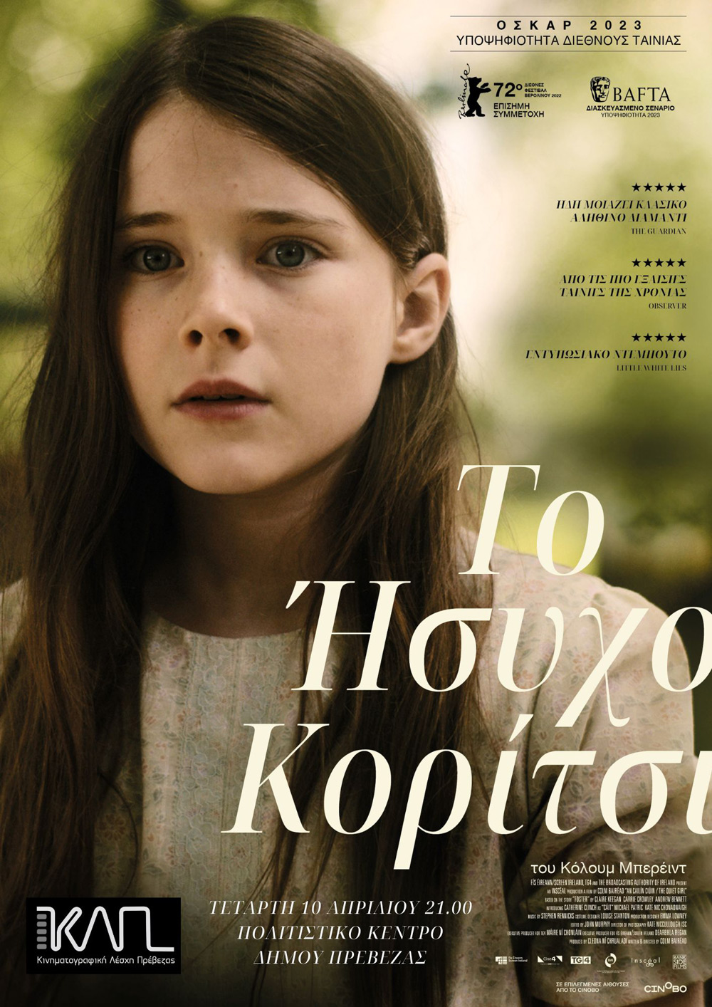 Η Κινηματογραφική Λέσχη Πρέβεζας πιστή στην προβολή ταινιών με κινηματογραφικό χαρακτήρα και αισθητική, προβάλει την ταινία «Το Ήσυχο Κορίτσι» του Κόλουμ Μπερέιντ την Τετάρτη 10 Απριλίου στις 21.00 στο Πολιτιστικό Κέντρο Πρέβεζας με εισιτήριο 4 ευρώ για φοιτητές, 6 ευρώ γενική είσοδο, και δωρεάν είσοδο για μαθητές και ανέργους.