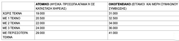 Τα εισοδηματικά κριτήρια για όλους προκειμένου να υποβάλλουν αίτηση ορίζονται ως εξής: