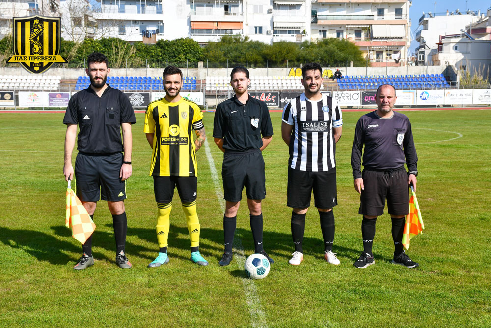 Ο ΠΑΣ Πρέβεζα μπήκε αποφασισμένος να «καθαρίσει» το παιχνίδι από νωρίς. Μόλις στο 5ο λεπτό, ο Αποστόλης Τσιούνης άνοιξε το σκορ, βάζοντας τις βάσεις για τον θρίαμβο. Η πίεση συνεχίστηκε και το 2-0 ήρθε με εύστοχη εκτέλεση πέναλτι του Τσάλα, μετά από ανατροπή του Πάνου Τσιούνη από τον τερματοφύλακα της Α.Ε Πρέβεζας.