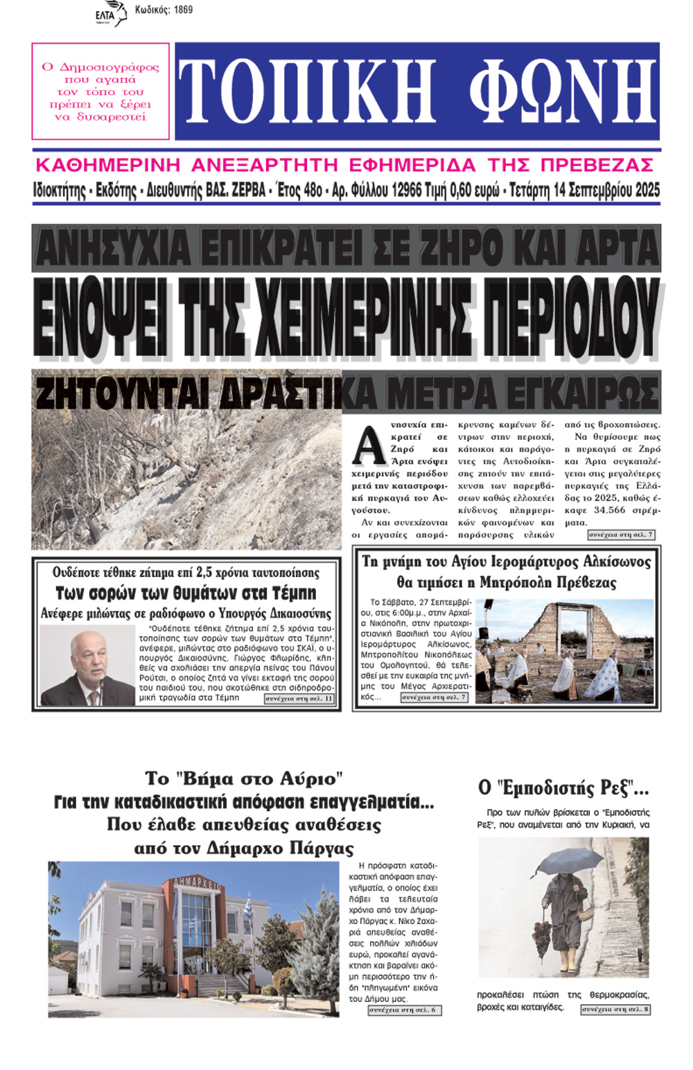 Καθημερινή Ανεξάρτητη Εφημερίδα της Πρέβεζας